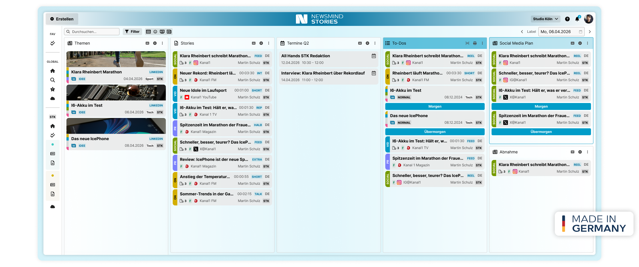 Mit Newsmind Stories organisieren Redaktions- und Kommunikationsteams alle ihre Themen, Inhalte und Kanäle in einem digitalen Workflow von der Idee bis zur Veröffentlichung.